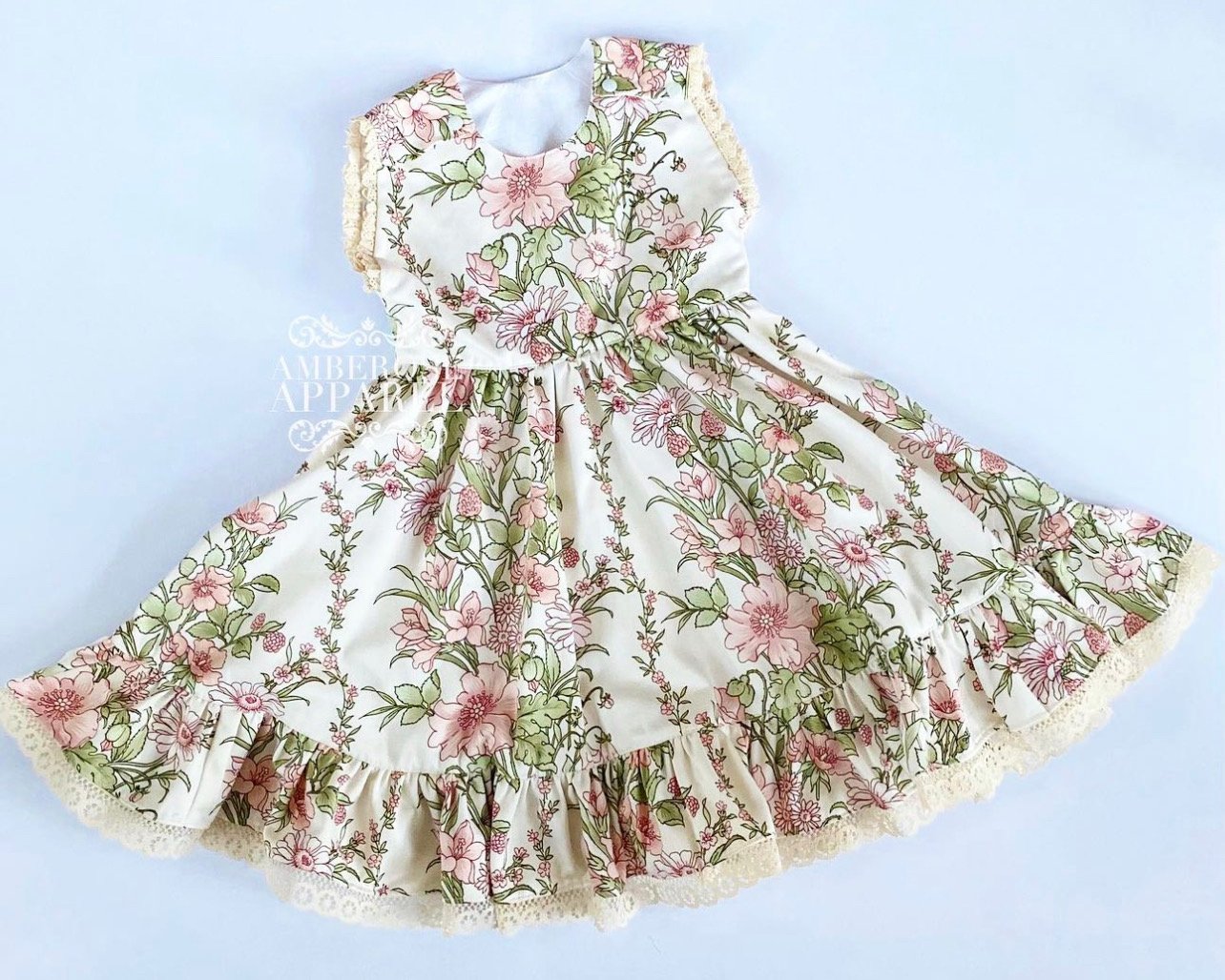 Our chelsea morning dresses starts at age 12-18 months to 4-5 years years there is an add on for ages up to 8-9 years for extra fabric . The baseline is full fabric ( none premium ) with a ruffles on the bodice. One ruffled tiered extra on the skirt.