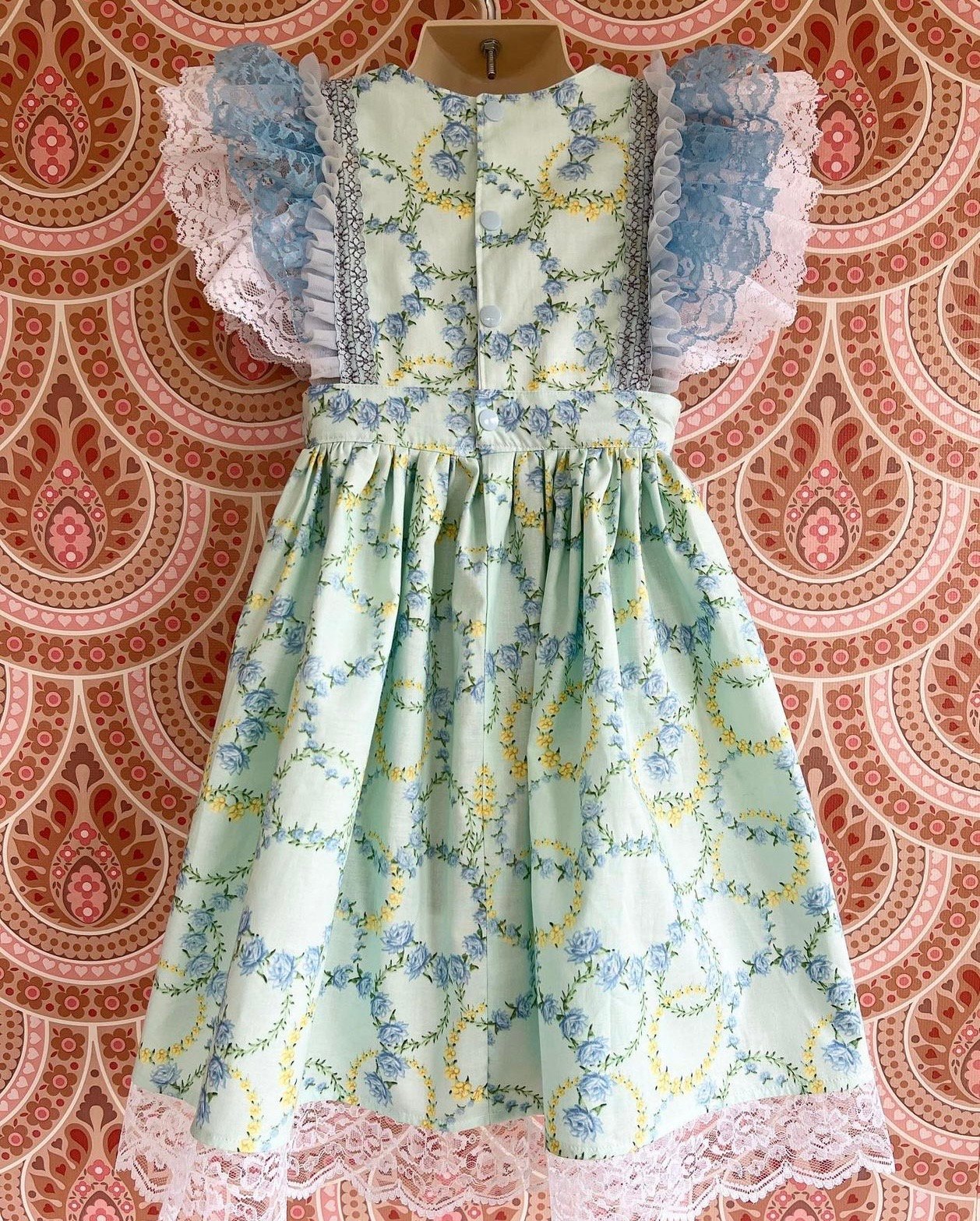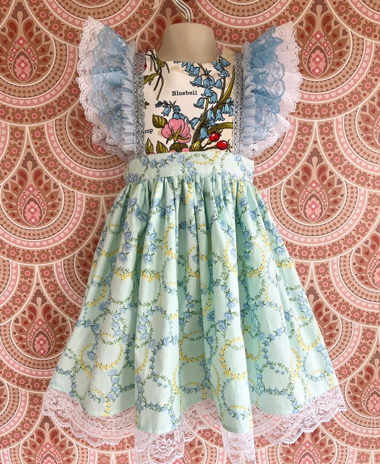 Our harvest moon dresses starts at age 12-18 months to 5-6 years. The baseline is full fabric ( none premium ) with 2 layers of lace ruffles on the bodice. One skirt panel with lace trim. There is an add on for a tier.