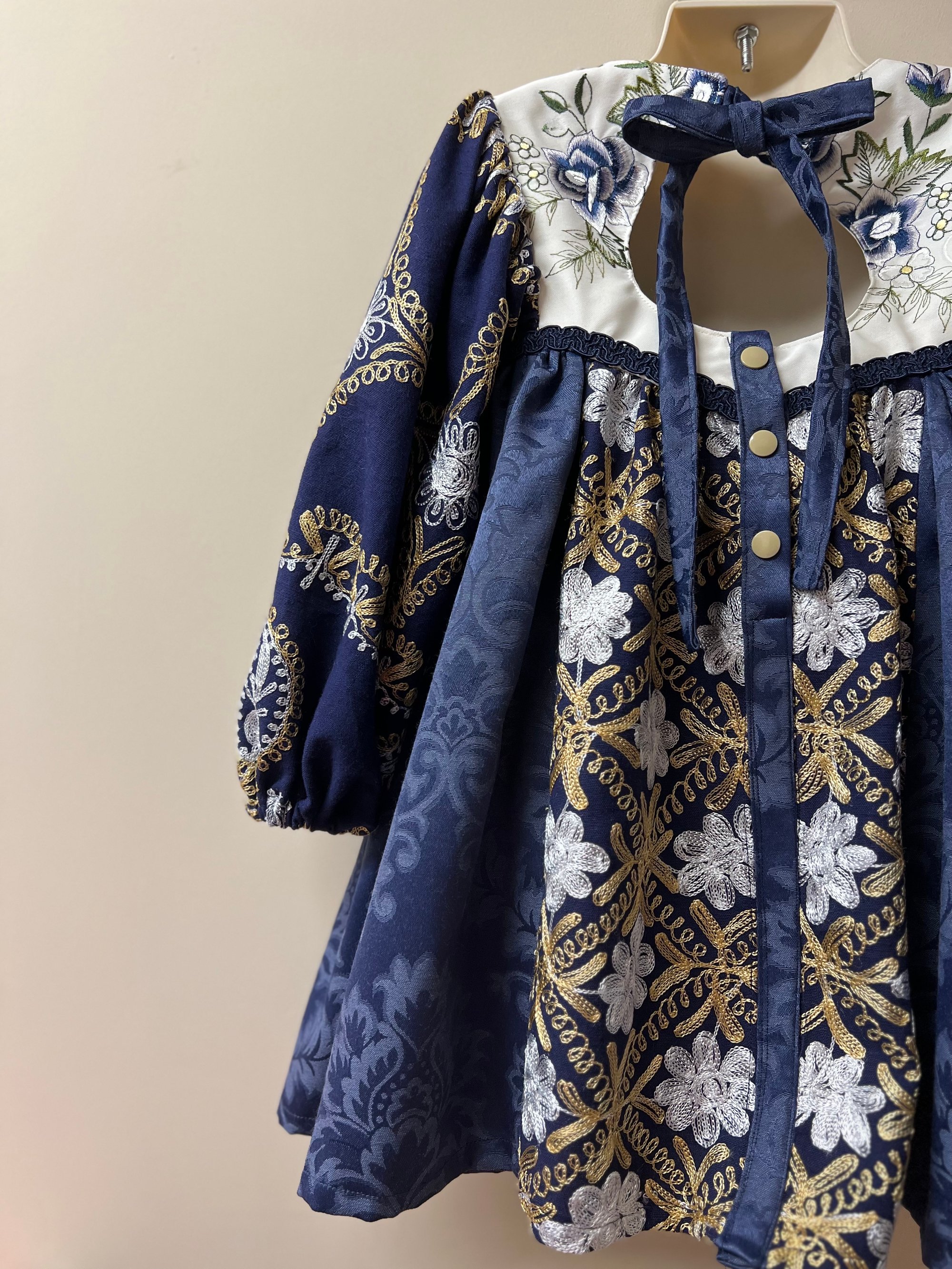 The Juliet dress is an over sized dress with a hem just above the knee. Beautiful details with a v shaped bodice giving it a medieval look. Comes in 2 sleeve lengths. Please state if you'd like long or short sleeves. The dress comes in sizes from 6 months to 8 years. Also as a set up the the age of 3 years. The dresses with the bloomers will be shorter in length.