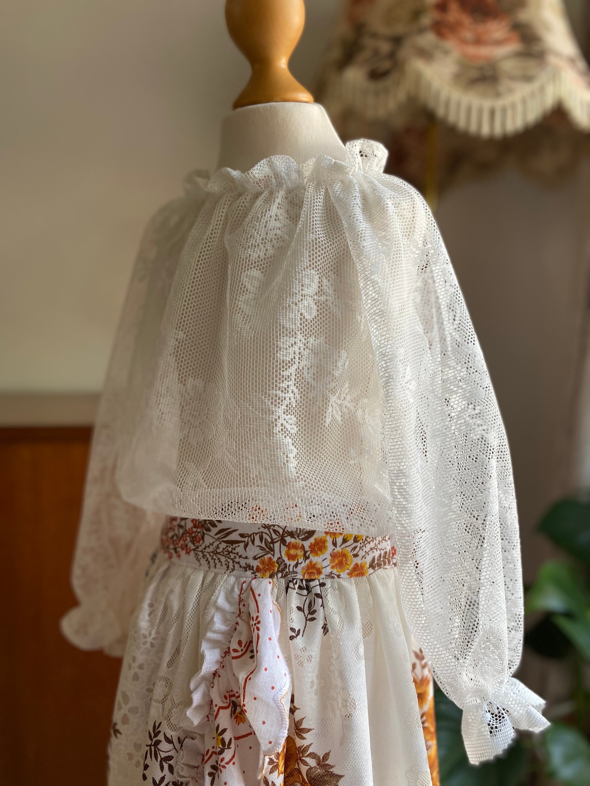 You are ordering a lace Gracie top with long sleeves only. These will be without shirring on the waist and please note they aren't lined. Leave a note if you would like shirring on the waist. This will be in WHITE or off white lace. It might be like the photo above. Lace might differ. These are idea to go under rompers, pinnys, dresses or jumpsuits. Turn around time is up to 4 working weeks. Any questions please dm on insta
