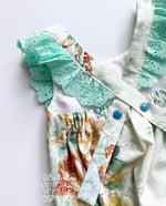 SURPRISE Such a versatile Romper. Can be worn alone in summer or with a top underneath. Ideal for Easter. Fastens with poppers at the back and underneath with an elasticated waistband.