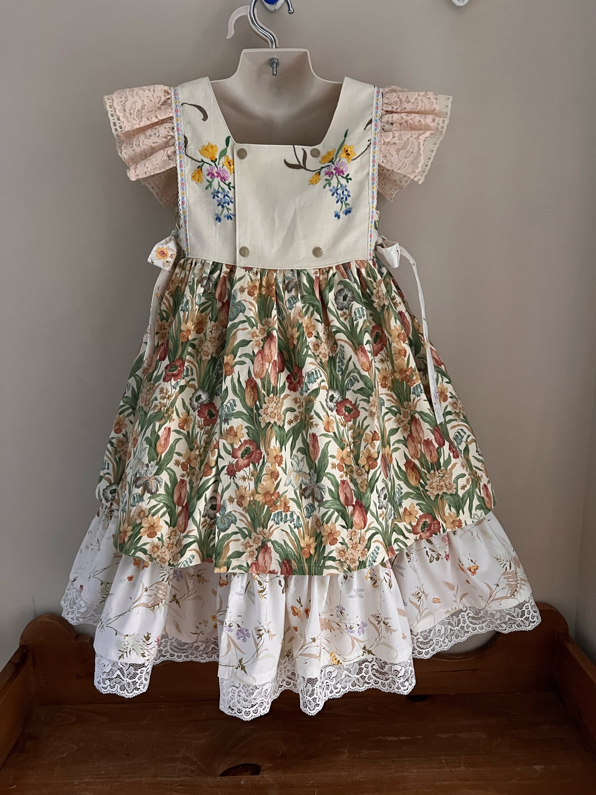 a baseline Caroline is all the same or a selection on complimentary fabrics. a double layer sleeve flutter, a single skirt with lace hem. please look at the add ons for extras. to add extras start by adding baseline to cart then come back and add all the add ons you require.