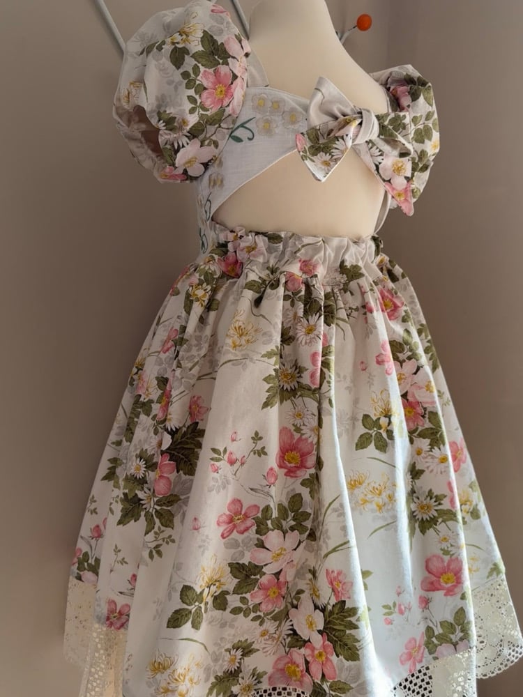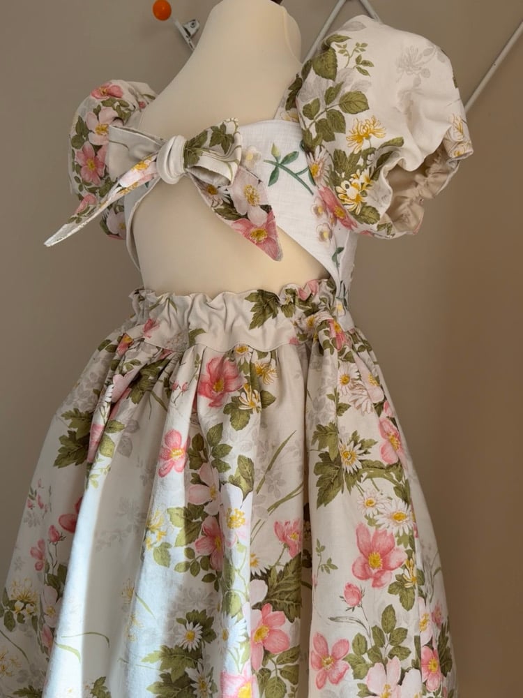 this gorgeous style dress with exaggerated puff sleeves, tie open back with an elasticated back waistband is so elegant.